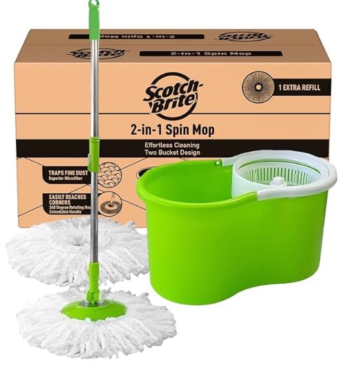Scotch-Brite 2-in-1 Bucket Spin Mop (Green, 2 Refills), 4 Pcs